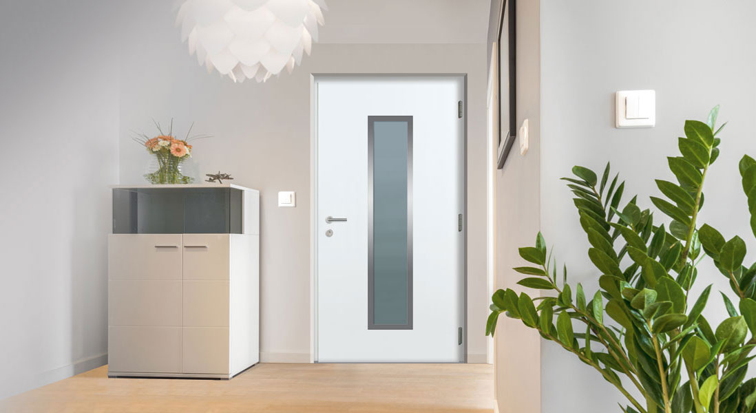 Auch die Innenseiten der noblesse-Haustüren können sich sehen lassen. Die Glasauschnitte sind bei modernen Haustüren entweder rahmenlos oder mit aufgesetzten Alunox-Flachrahmen in Edelstahloptik ausgestattet. Klassische Türmodelle haben einen aufgesetzten weißen Alu-Decor-Rahmen.
