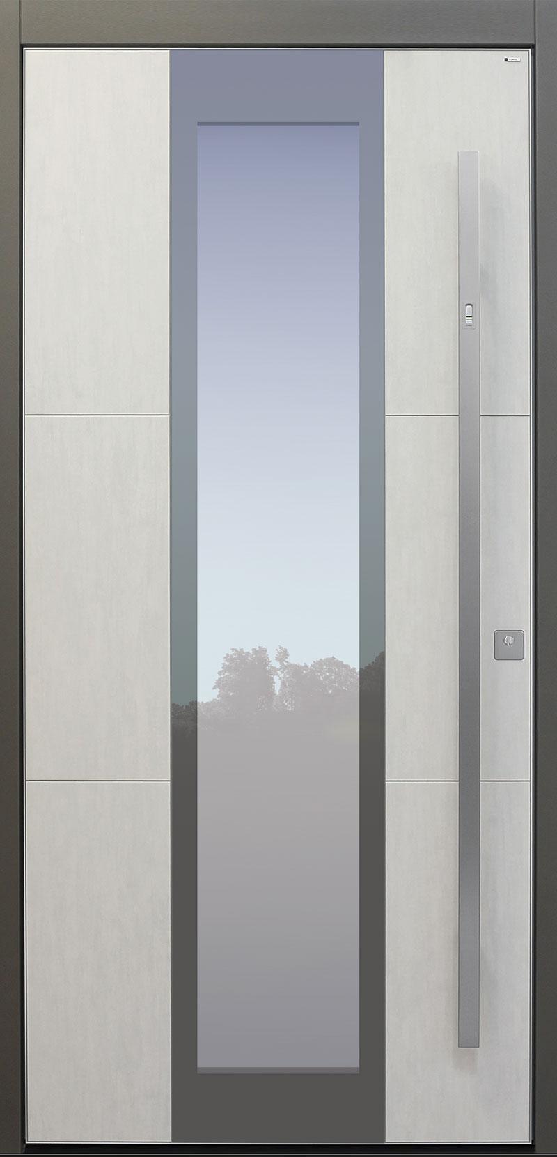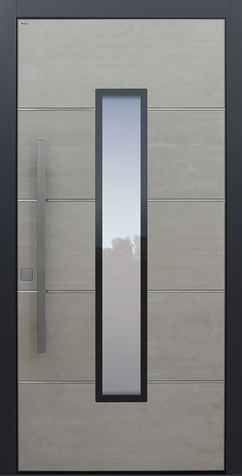 Faserverstärkte Betonplatten garantieren eine absolut wartungsfreie und extrem widerstandsfähige Oberfläche. Jede Betonoberfläche ist ein Unikat und wird in eigens angefertigten, nur einmal verwendeten, Formen abgegossen – daher gleicht kein Modell dem anderen! Dabei auftretende Farbunterschiede oder Strukturabweichungen geben der Tür ihren besonderen Charakter.