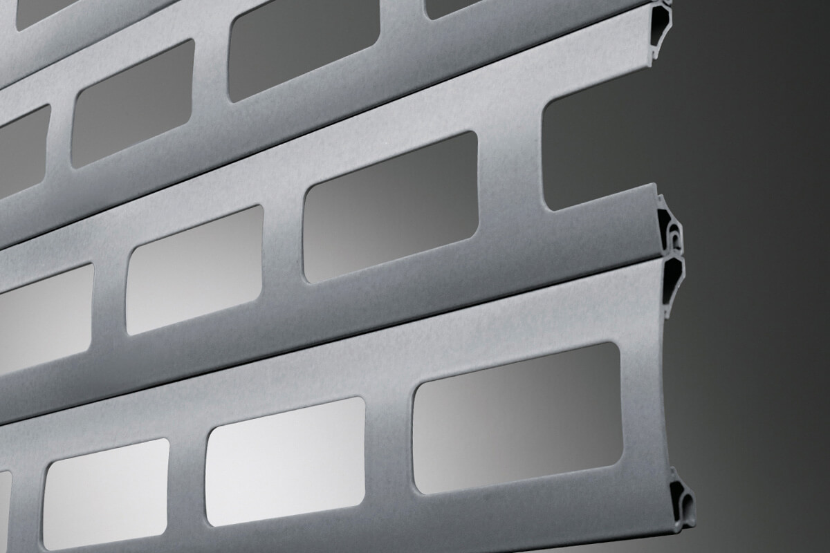 Hochwertig gekapselte Aluminiumkonstruktion, gepaart mit modernster Antriebstechnik und einer edlen und filigranen Optik. Das ist PROTEGO von ROMA – das automatische Aluminium Rollgitter. Auf Basis des ROLENTO-Systems vereint es dessen Vorzüge mit einer einzigartigen Optik. PROTEGO gibt es sowohl als Blendkappen- wie auch als Flanschplattentor mit 3 verschiedenen Rollgitterbehängen.