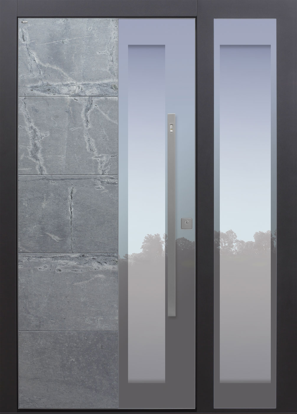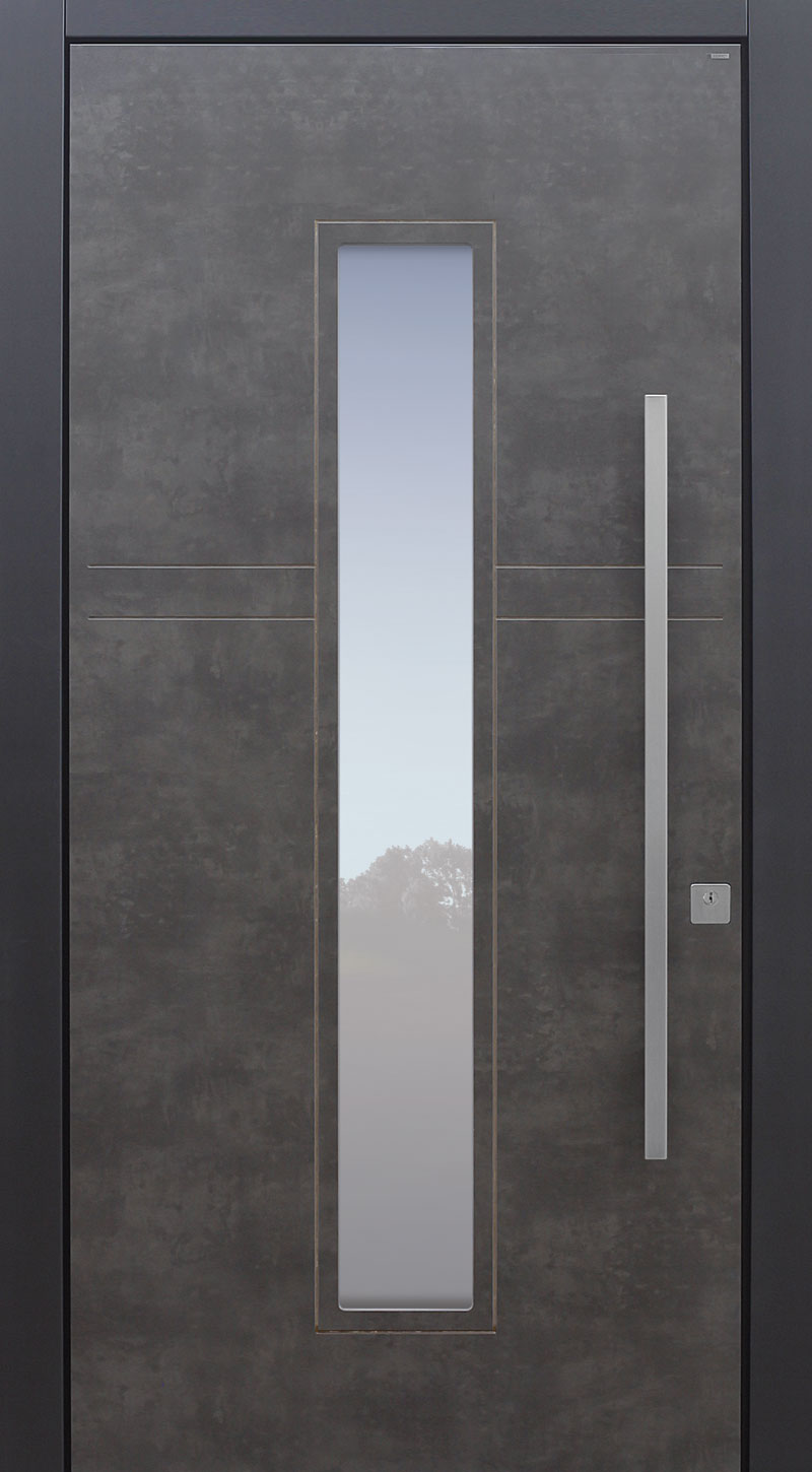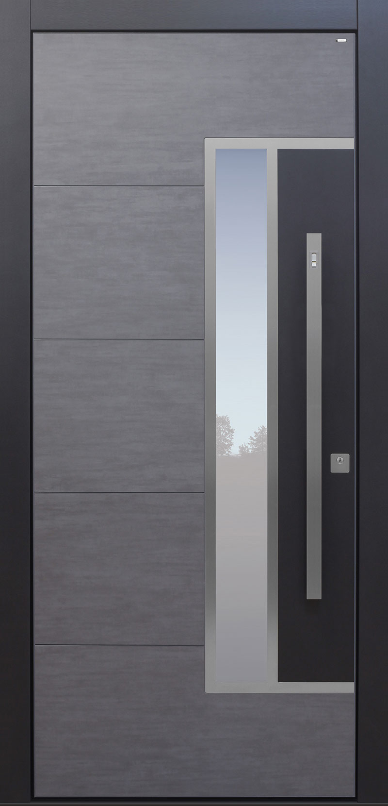 Faserverstärkte Betonplatten garantieren eine absolut wartungsfreie und extrem widerstandsfähige Oberfläche. Jede Betonoberfläche ist ein Unikat und wird in eigens angefertigten, nur einmal verwendeten, Formen abgegossen – daher gleicht kein Modell dem anderen! Dabei auftretende Farbunterschiede oder Strukturabweichungen geben der Tür ihren besonderen Charakter.